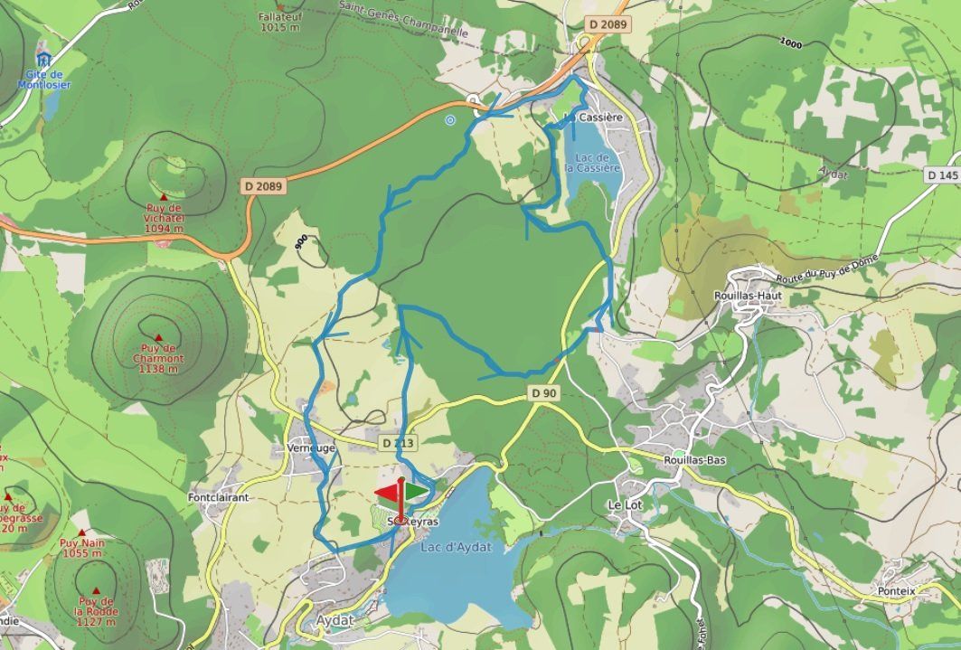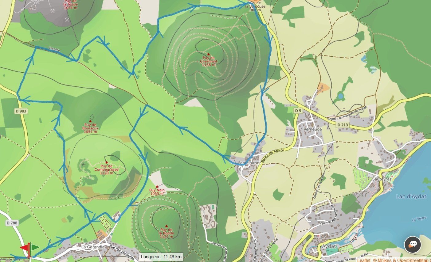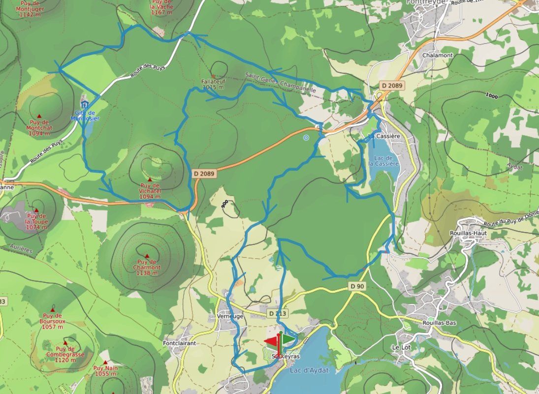 - Circuito de 20 km alrededor de los puys (Vichatel, Charmont, Rodde...), saliendo del camping (circuito propuesto por un campista, ¡a quien agradecemos!)