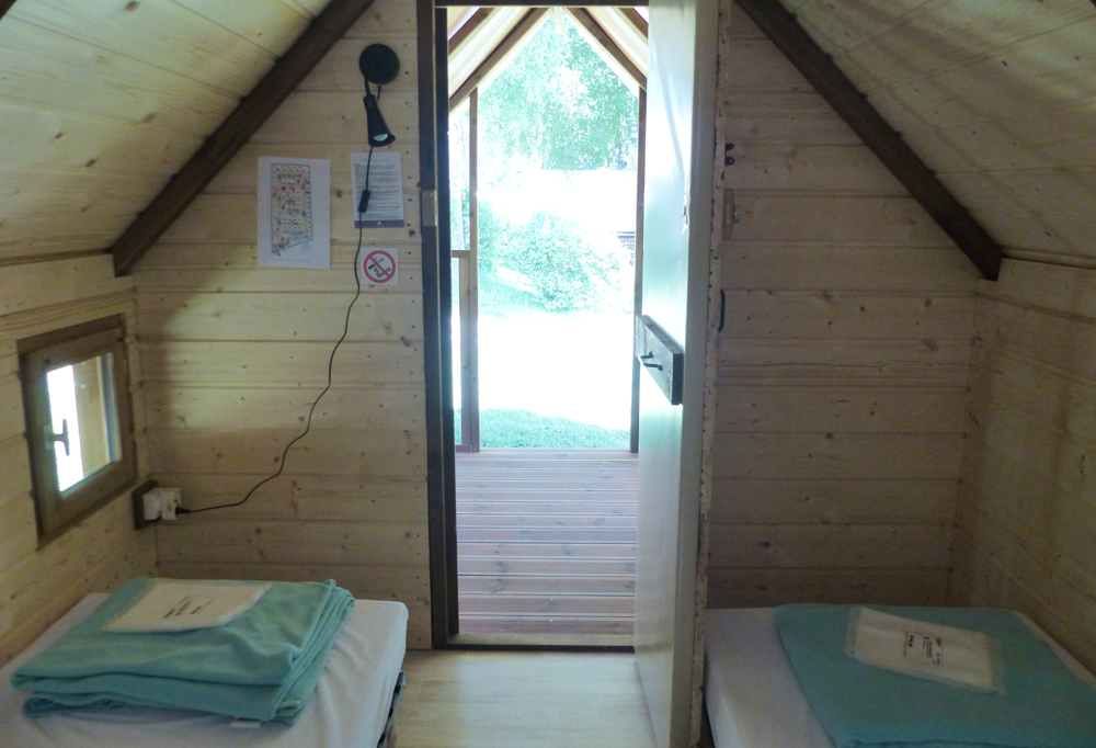 El albergue Trappeurs no está equipado con televisión ni instalaciones sanitarias (acceso al bloque sanitario del camping)