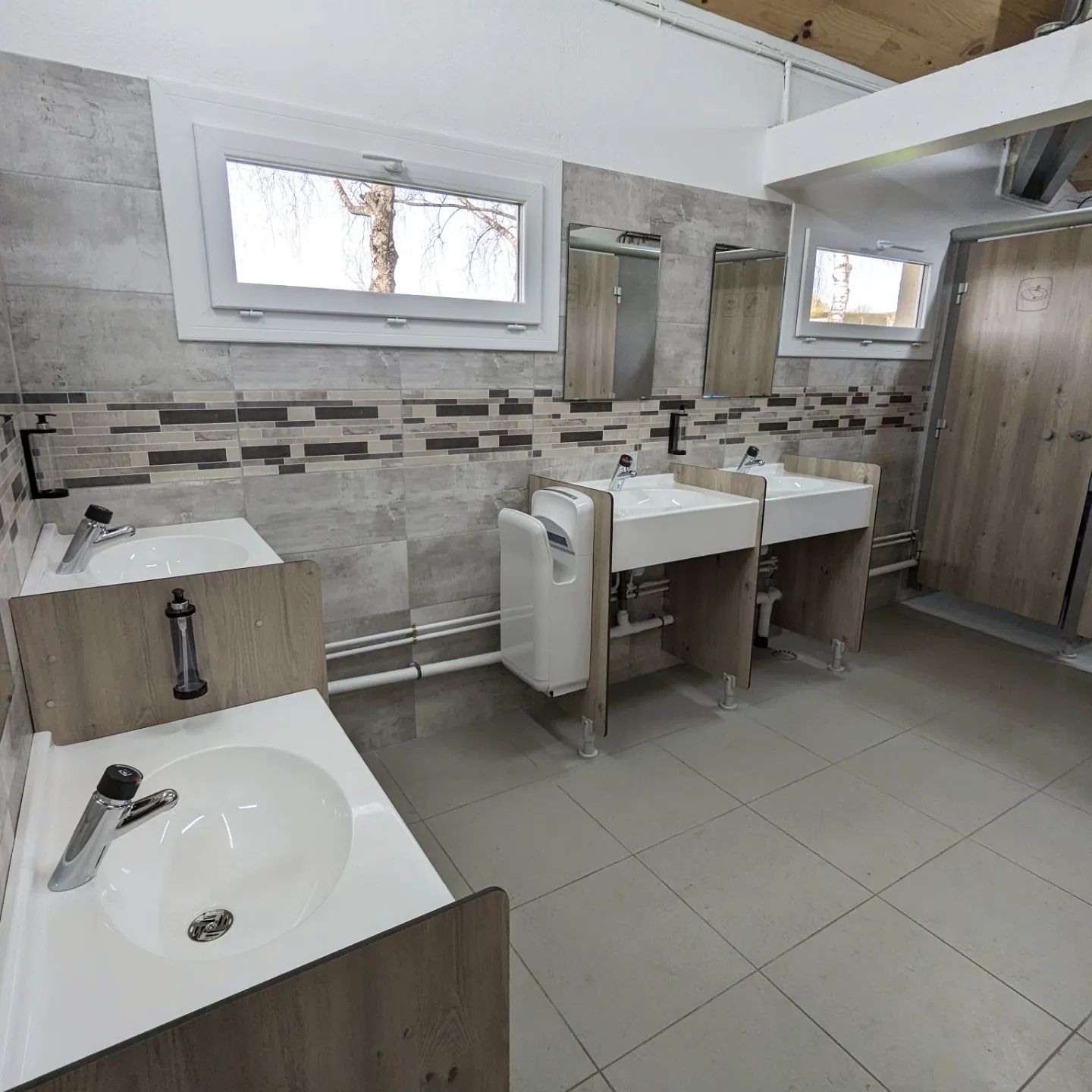 El bloque de sanitarios fue completamente renovado en 2024. Se compone de 4 cabinas con lavabo, 8 lavabos (incluidos dos niños), 6 cabinas de ducha individuales, 2 cabinas familiares con ducha y lavabo , 8 baños (incluido un niño) , dos secadores de pelo y dos secadores de manos también están disponibles.